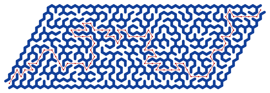 The hexagonal grid graph provides the maze walls; the triangular grid graph provides the maze paths.